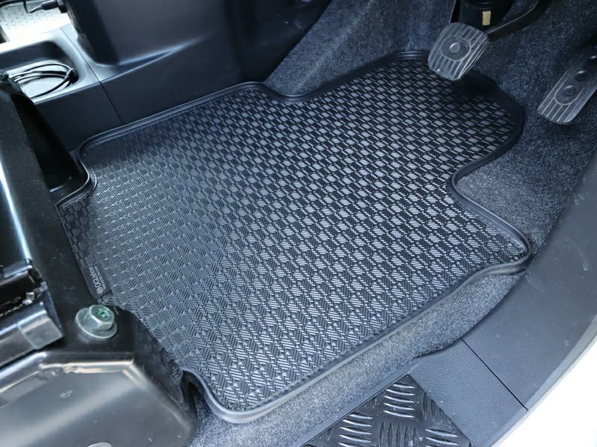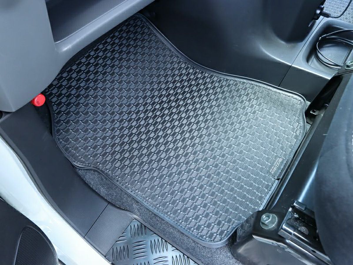 使用用途に応じて選べるラバータイプとカーペットタイプの2種類を設定しました。ラバー部分には防水性・耐久性に優れたエラストマー素材(TPE)を採用し、どちらのタイプも縁高モール(HighEdge)構造になっていて、水や汚れがマットの外に飛散しにくい仕様です。自動車用内装材の[難燃性試験成績第JATA 08059号]を取得済みです。
