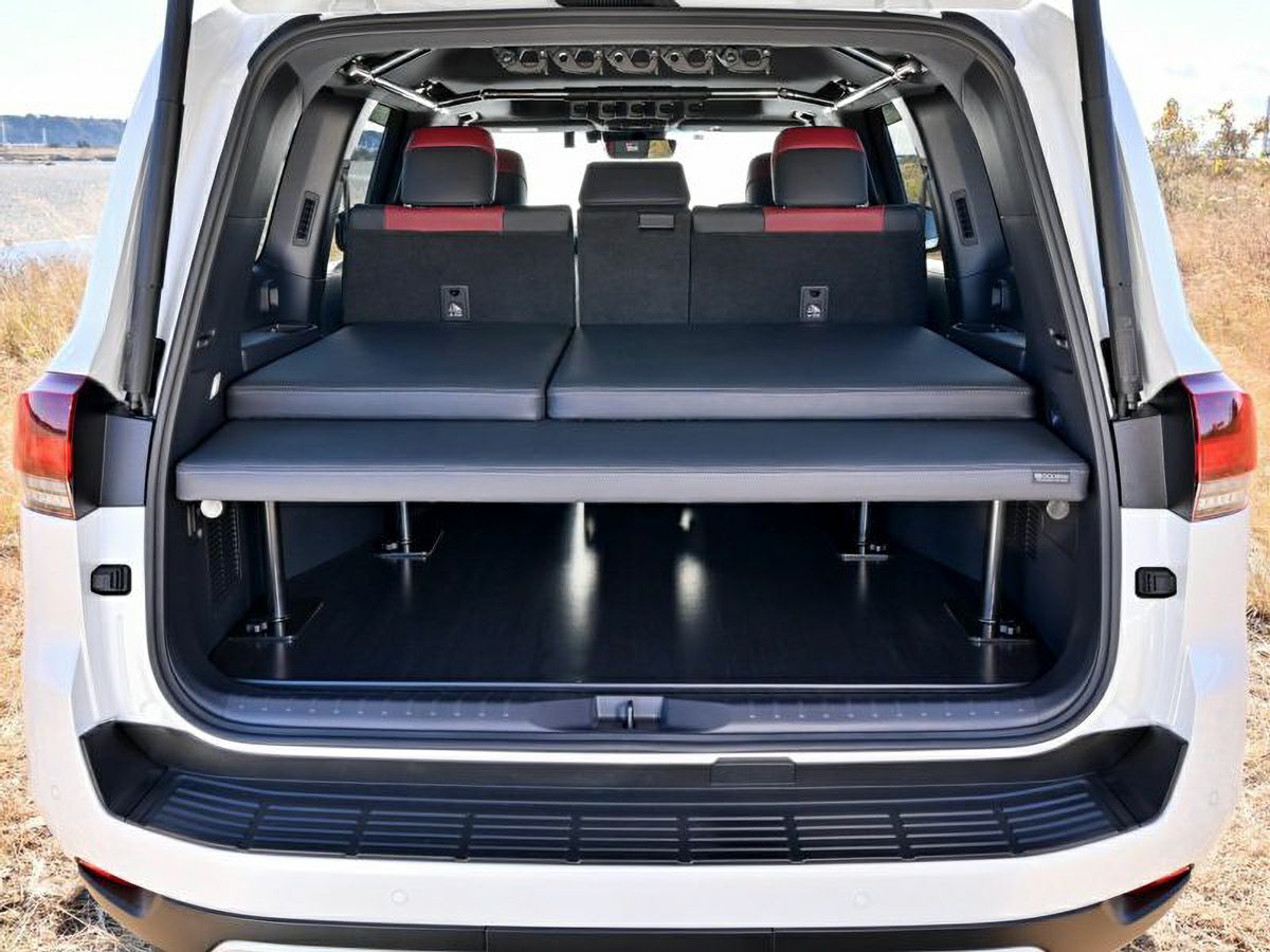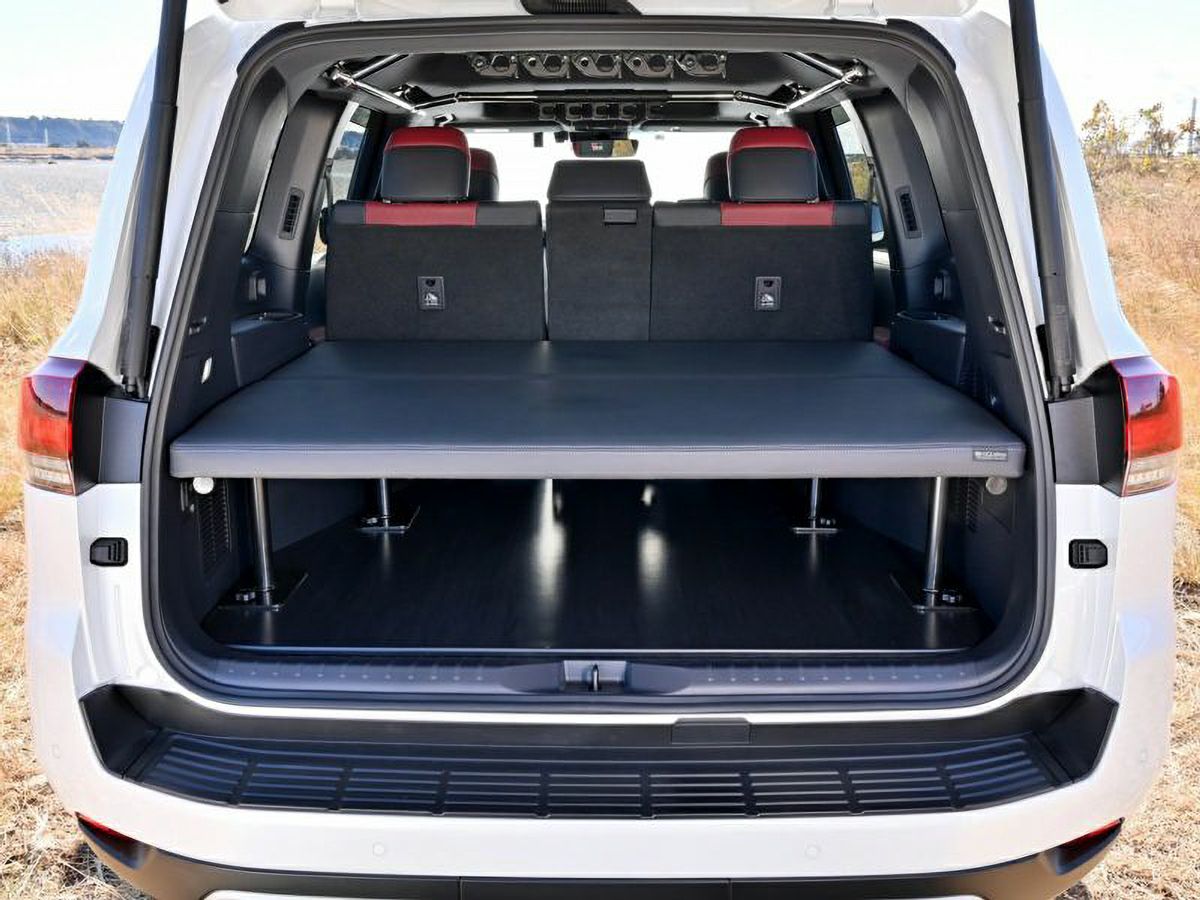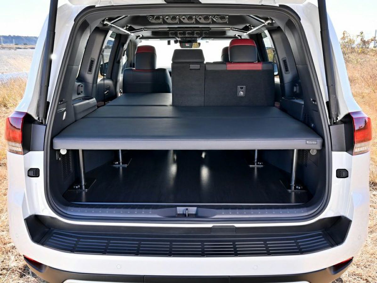 ランドクルーザーの上質で快適な室内のコンセプトを損なわないよう、ボルトオンで装着可能なベッドシステムが完成しました。