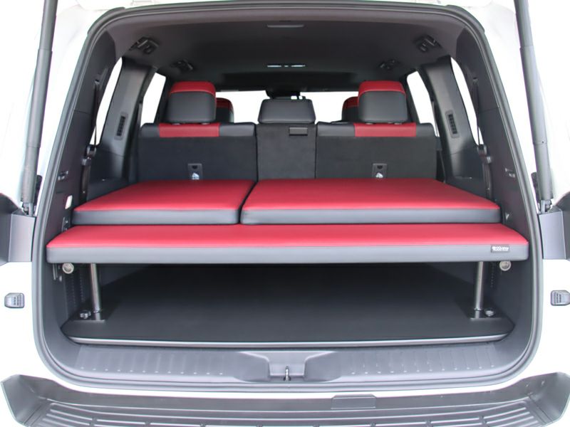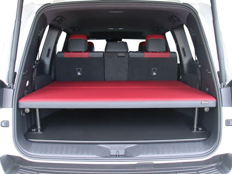 ランドクルーザーの上質で快適な室内のコンセプトを損なわないよう、ボルトオンで装着可能なベッドシステムが完成しました。