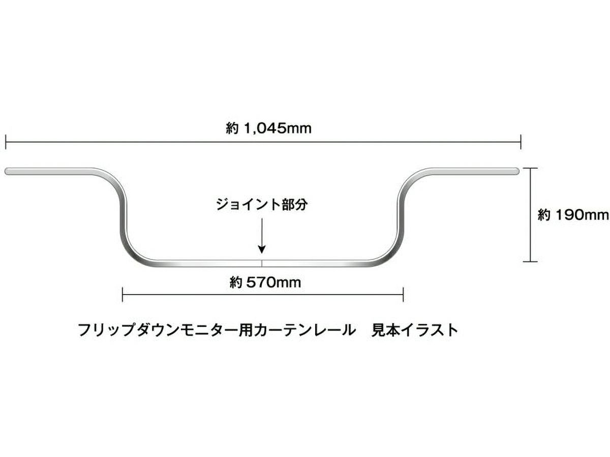 フリップダウンモニターをかわして間仕切りカーテンを付けることができるレールです。最大12.8インチのフリップダウンモニターをかわすことができます。 ※メーカーによってモニター枠の大きさが変わるので、必ずサイズをご確認ください。