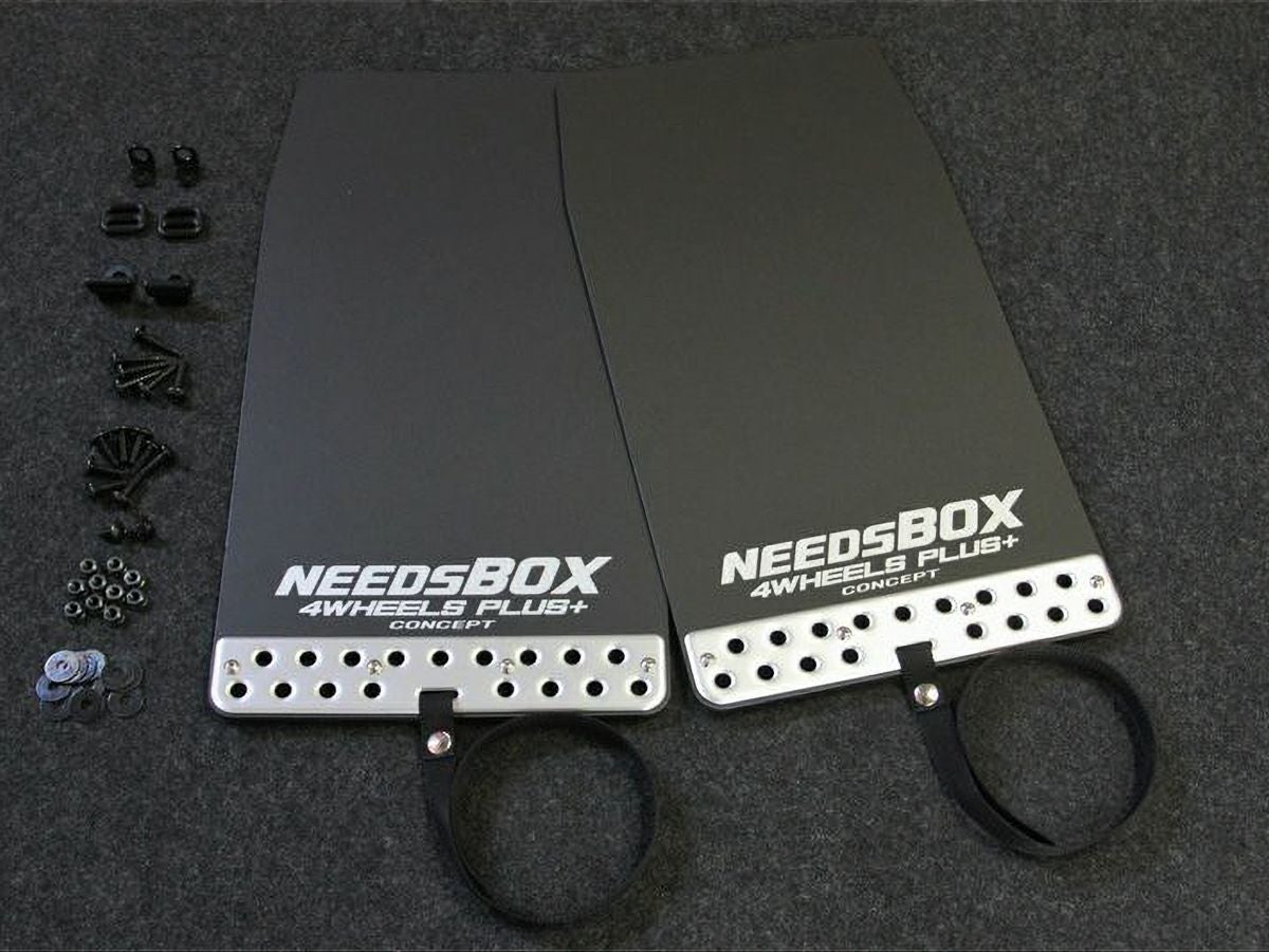 NEEDSBOX マッドガード汎用タイプの装着を容易にする車種別専用取付キットです。セットにはブラケット、サポートプレート、フラップカット用型紙が含まれています。
