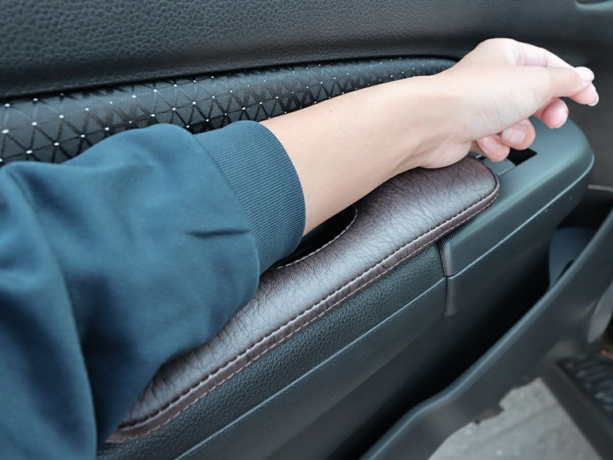 ドアポケットを使ってひじの置き場を確保します。運転中に体にかかる負担を軽減したり、休憩中に腕を置いたりと、ロングドライブから日常まで幅広いシーンで役に立ちます。
