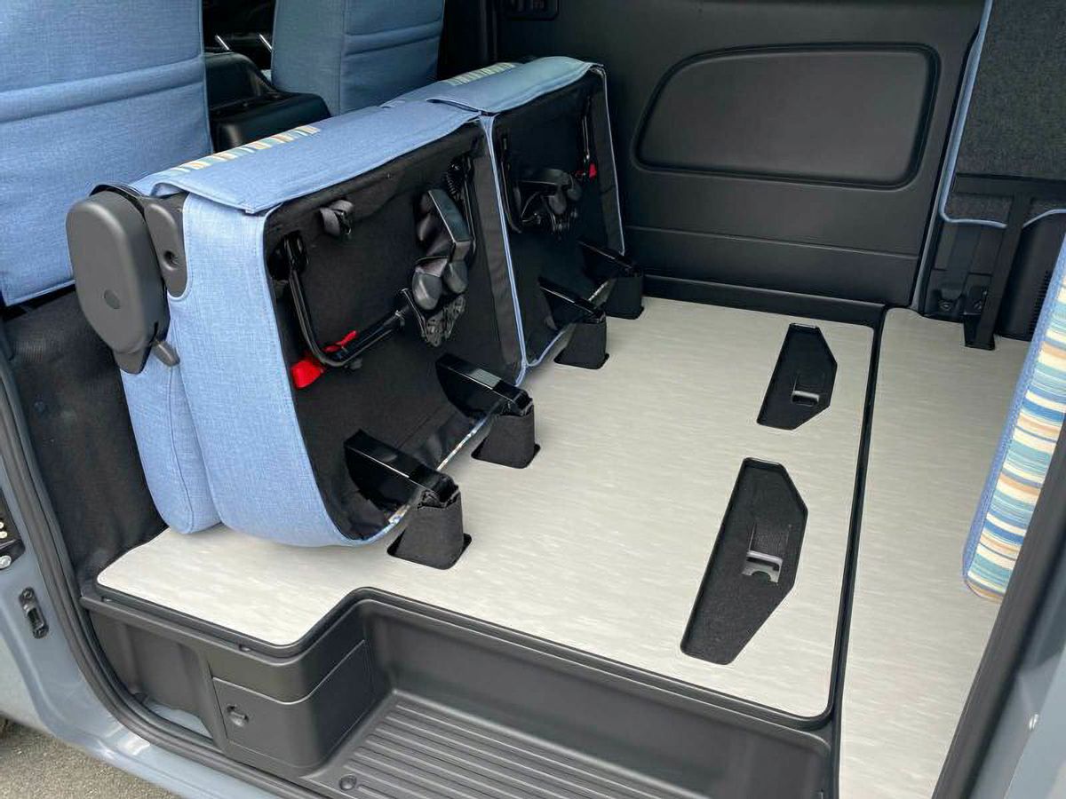 ESフリップベッド、ESフロアパネル、ESシートカバー、ESクッションという定番のESパーツを、あのボクシーがプロデュースした「BOXYSTYLE DESIGN」。ESフロアパネルは硬質タイプの床材を採用し、実用性に優れた仕様ながら、どこか遊び心があるカリフォルニアスタイルに仕上がっています。