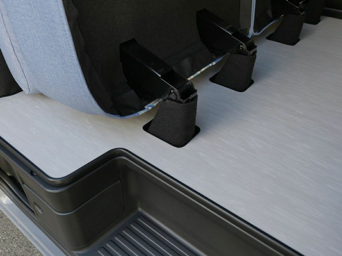 ハイエース用と同様に、H型モールを標準装備したことで、前後のパネルのつなぎ目を気にしなくてもよくなり、よりフラットなラゲッジルームを実現しました。土や汚れがパネル下に落ちにくくなり、使い勝手が向上しています。