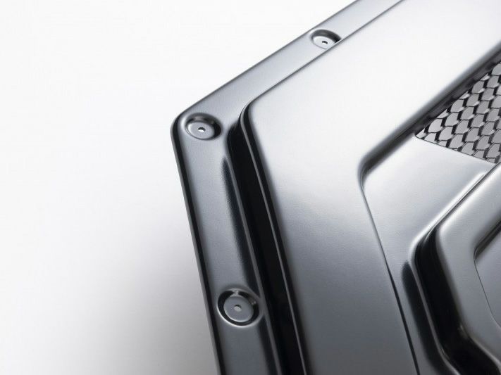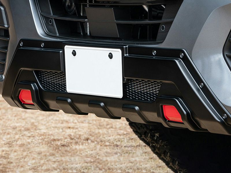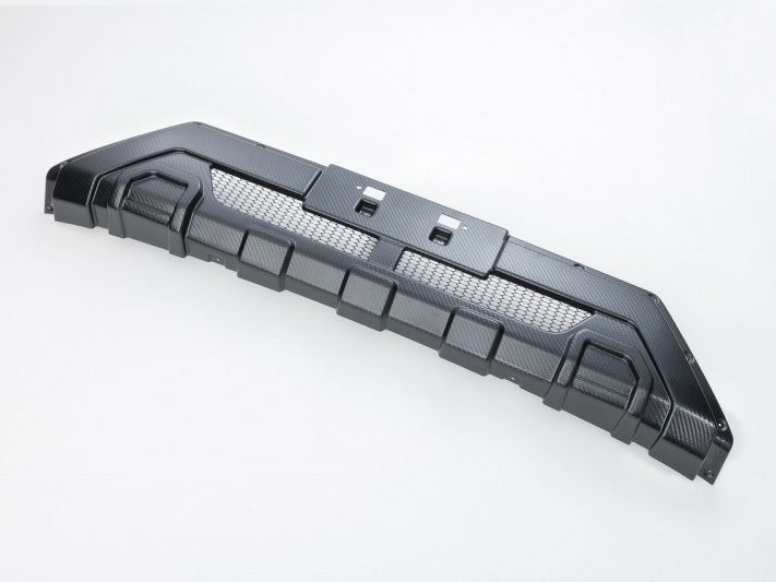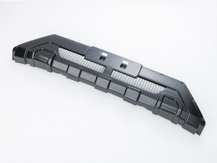 北米系のピックアップトラックをコンセプトに、迫力のある力強いデザインに仕上げました。中心部分には純正の通気口を損なわないようダクトを設け、アルマイト加工したメッシュを採用。飛び石によるメッシュの塗装の欠けを軽減させます。