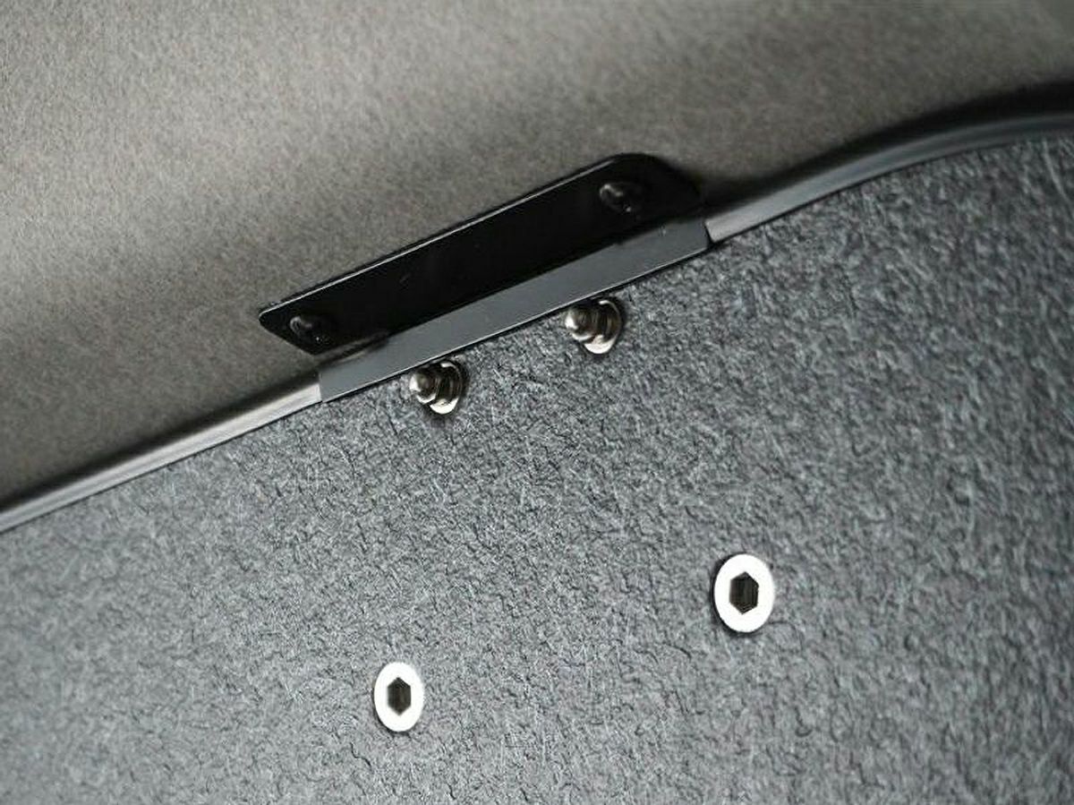 従来品と比べ、さらに取り付けやすく、見た目もスタイリッシュにするため、専用ステーを新たに開発。パネルの周囲にモールを巻き、ボディに傷が付きにくくなるよう改良しました。さらに、裏面もクッションフロア仕上げとし、見た目も美しく、外からの遮光性も高まりました。
