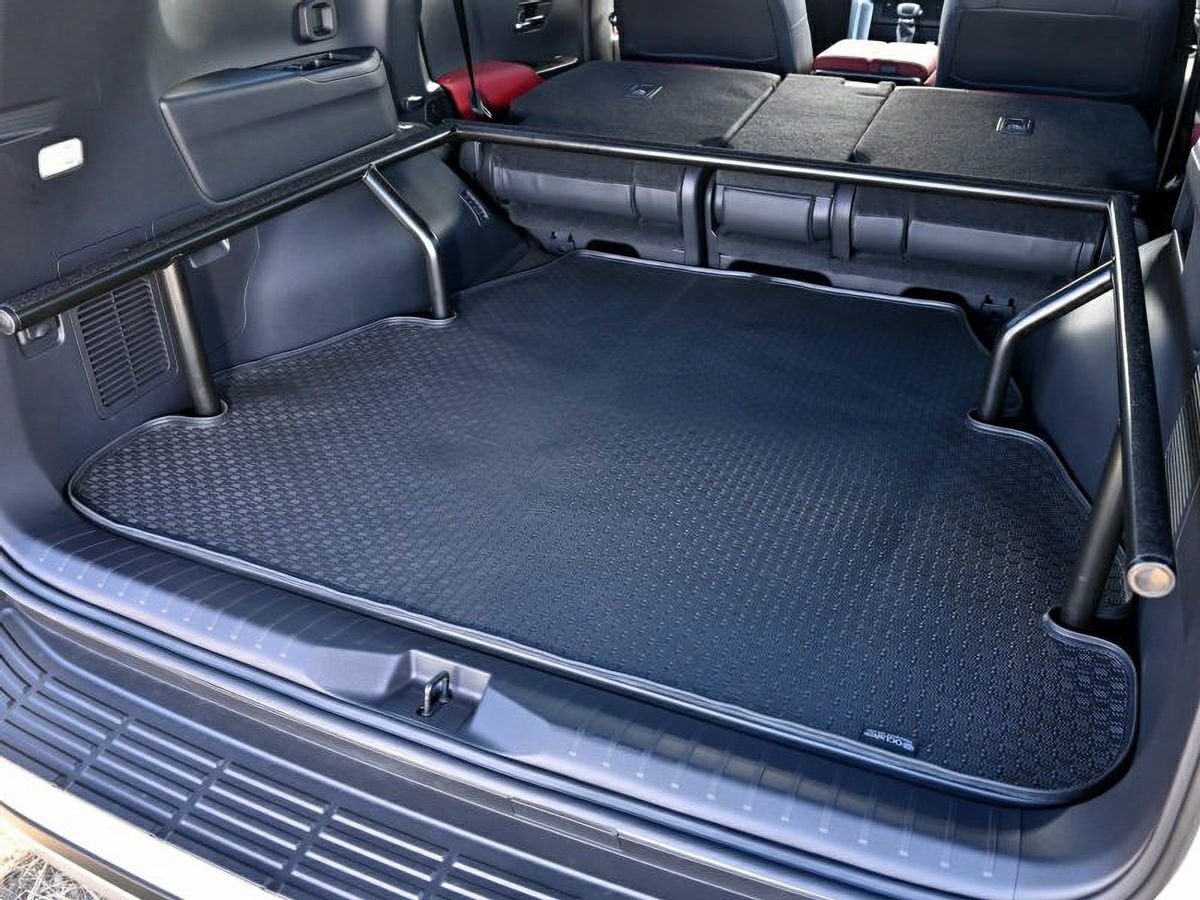 ランドクルーザー300 ESベッドシステムのフレームにジャストフィットした専用設計のカーゴマットです。濡れた荷物も気にせず積める、防水性・耐久性に優れたエラストマー素材(TPE)を採用し、さらに、泥や水などの汚れが飛散しにくい構造の縁高モール(High Edge)で仕上げています。