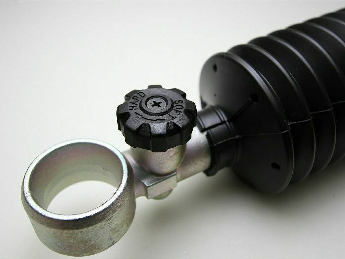フロントが重いディーゼル車輌やワイドボディ4WD車は、安定させようと減衰力を調整して硬くするオーナーが多く見受けられました。そのように調整すると、今度は突き上げが生じるという悪循環が起こります。そこで、長距離の移動が多いトランポユーザーが少しでも快適に移動できるように、試作を繰り返し行ないました。 完成したショックは、オーリンズの高い技術にオグショーのテイストが加わった、これまでにない満足のいく仕上がりになっています。突き上げの軽減はもちろんですが、ブレーキをかけた際の安定感や、高速走行時でのレーンチェンジの際などに、このショックの完成度の高さを実感していただけるはずです。 トランポモデルにも、通常仕様のオーリンズショック同様、オーリンズ独自の伸圧同時制御バルブ「DFV(デュアル・フロー・バルブ)」が搭載されていて、理想的な減衰特性を実現。快適性と走行性能を高次元で両立させ、さまざまなプロフェッショナルユースを足元から支えます。さらに、装着したまま調整可能な20段階の減衰調整機構を搭載。走行シーン、積載状況に合わせたセッティングが可能です。
