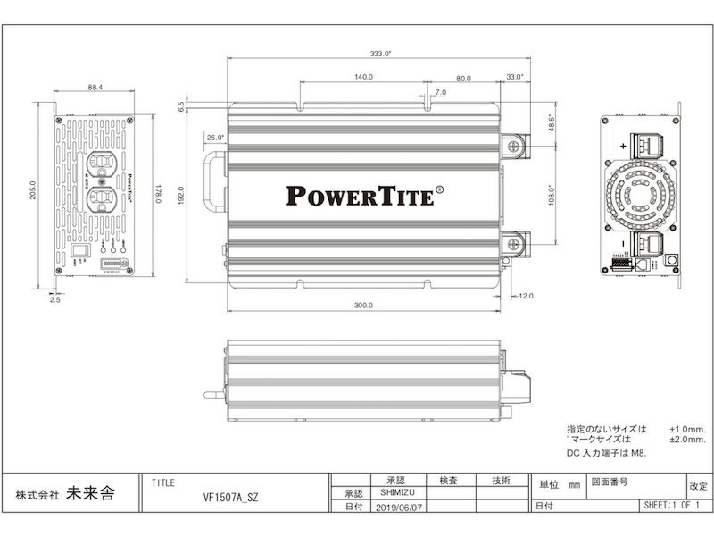 POWERTITE 正弦波インバーター 1500W 12V VF1507A-12VDC