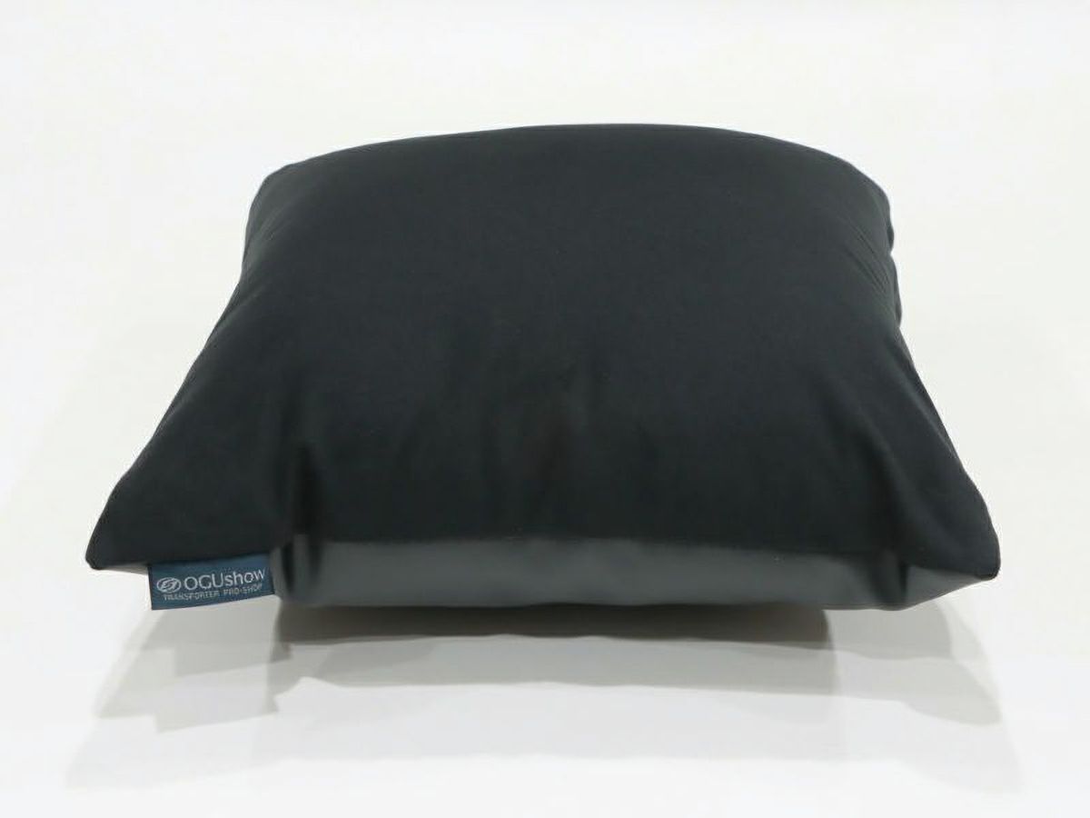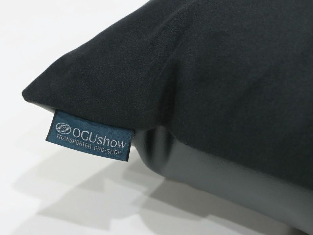 オグショーESシートカバーなどに使用しているブラックレザーとブラックモケットの2種類の生地を使ったオリジナルクッションです。車内でリラックスする時や、就寝時の枕として使用していただけます。
