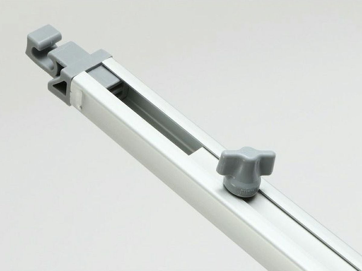 アジャスト量は144~265cmです。湾曲しているため、雨の日などに装着すると、オーニング上の水たまりを防ぐこともできます。F45i 4.0m以上に標準で付いています。