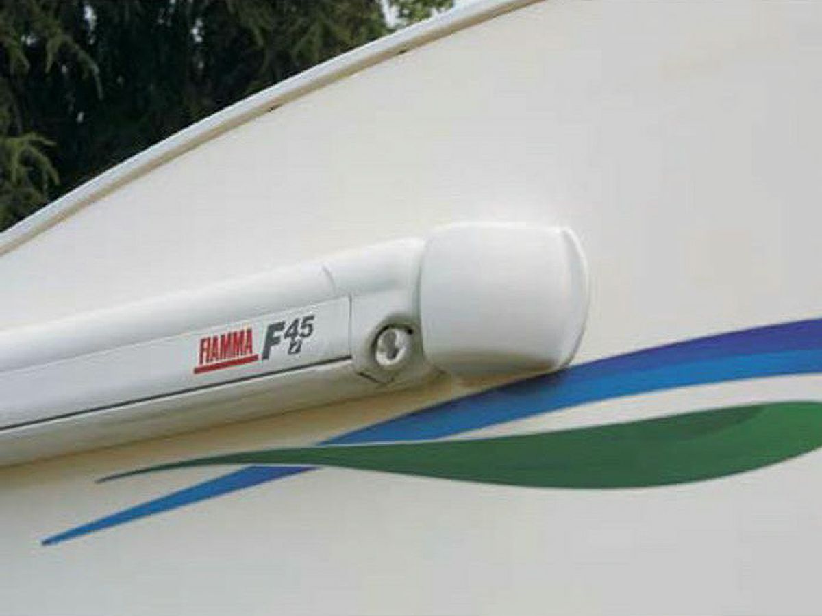 FIAMMAオーニングF45シリーズに取付けられるオーニングスポイラーです。進行方向側へ取付ければ、風きり音などを防ぐことができます。また、クランク側に取付けることで、ギヤの保護としても使用できます。