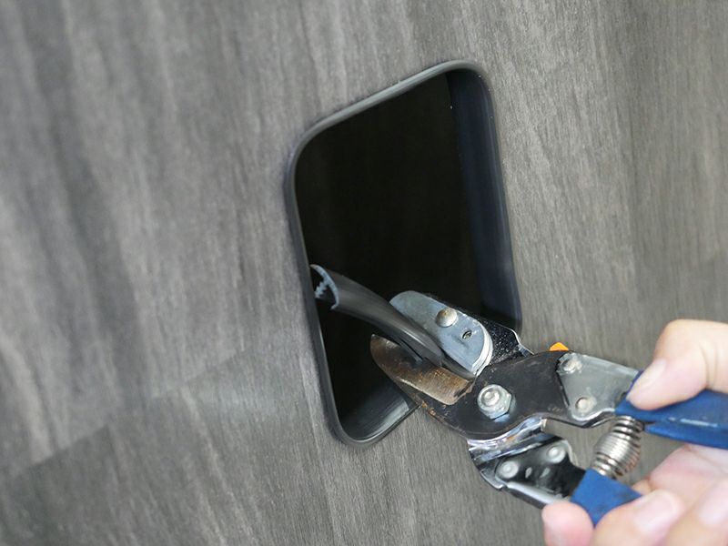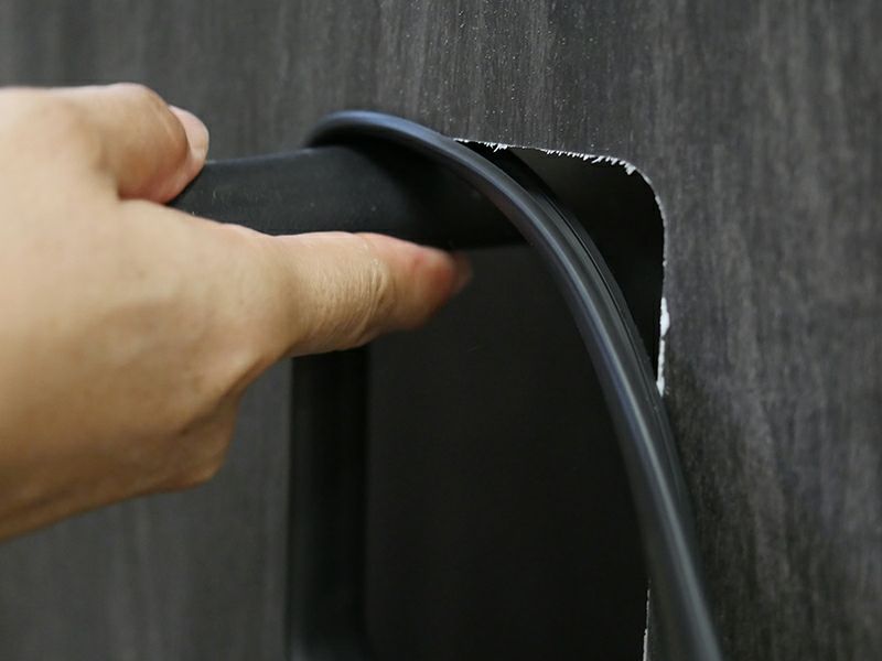 最低でも12mmの板の厚みが必要となります。(裏側に若干はみ出ます) それ以下の板ですとモールを取付けるための溝を掘ることが難しくなります。取付ける際にはモールを少し暖めると作業がスムーズになり、きれいな仕上がりになります。