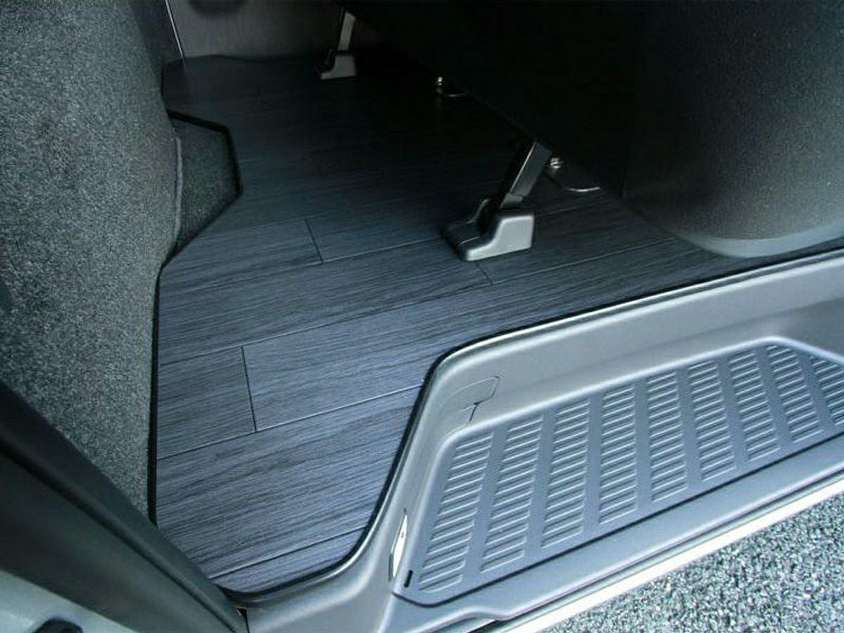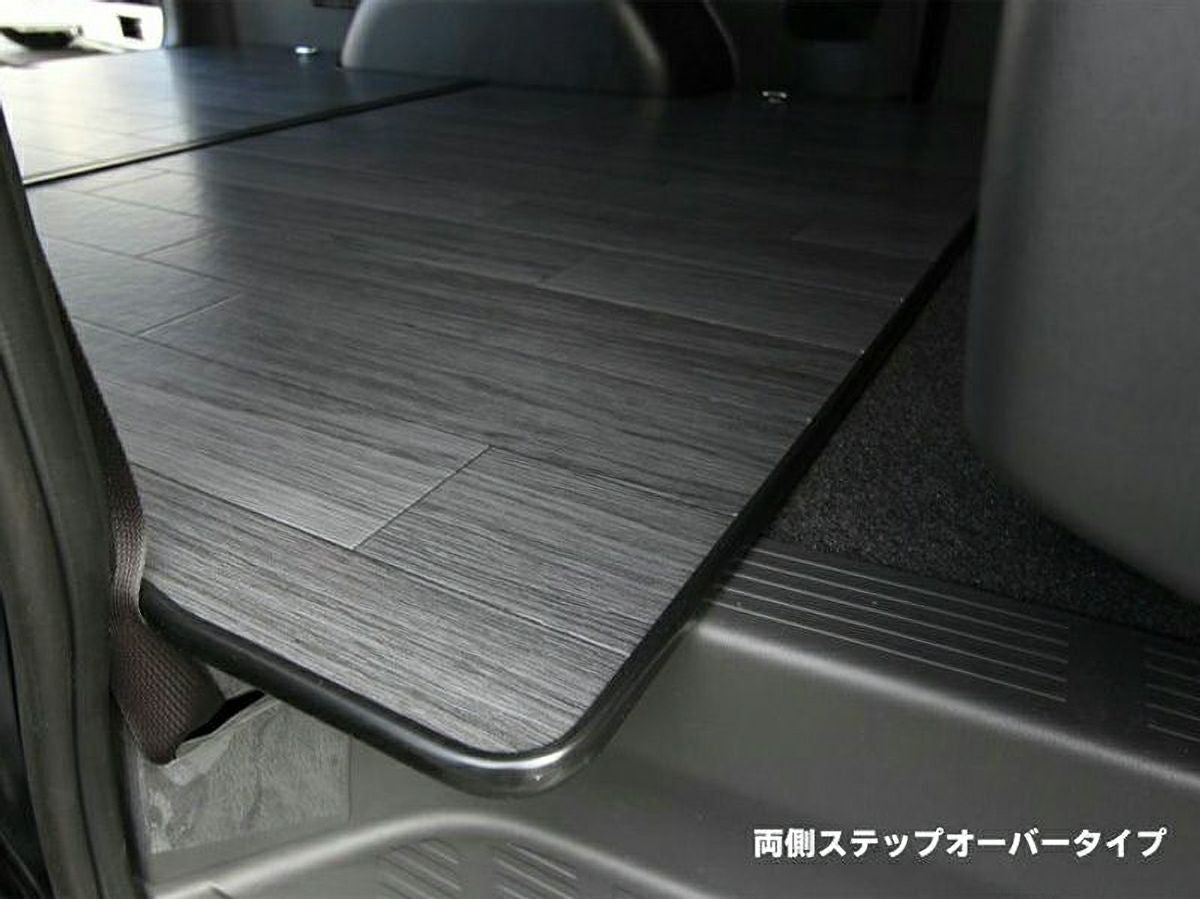 バイクを真っ直ぐ積みたいときにESフロアパネルRだけだとちょっと長さが足りませんでしたが、このESフロアパネルFを同時装着すれば、あこがれの全面床貼りが完成します。構造変更不要で取り付けはボルトオンで行なえます。