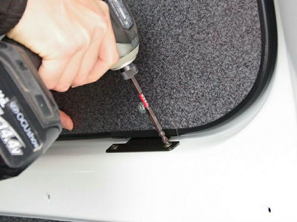 固定金具が固いので写真のようにぴったりと固定することはできず、車体側とパネルに隙間がちょっと空きます。 ですので先に窓にシェードなどを張り付けておいてからパネルを取り付けたほうが(その余裕はあります)、遮光や断熱にもいいと思います。 なお、パネルのねじ穴は15mmのM6ボルトでもちゃんと全部ねじ込めるくらい深いです。