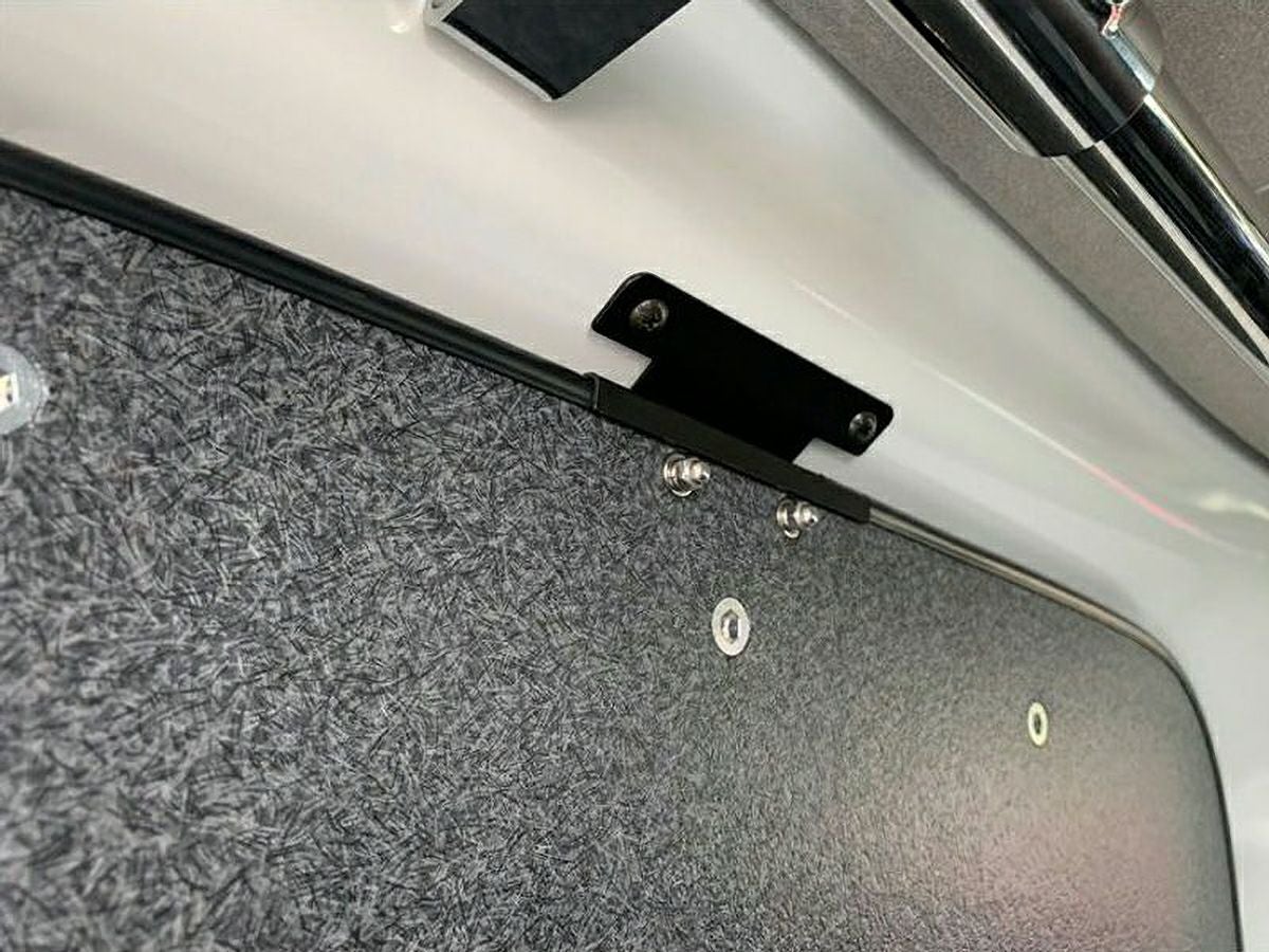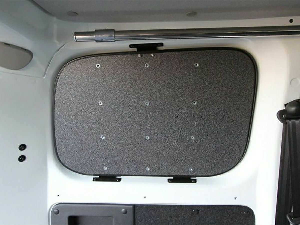 固定金具が固いので写真のようにぴったりと固定することはできず、車体側とパネルに隙間がちょっと空きます。 ですので先に窓にシェードなどを張り付けておいてからパネルを取り付けたほうが(その余裕はあります)、遮光や断熱にもいいと思います。 なお、パネルのねじ穴は15mmのM6ボルトでもちゃんと全部ねじ込めるくらい深いです。