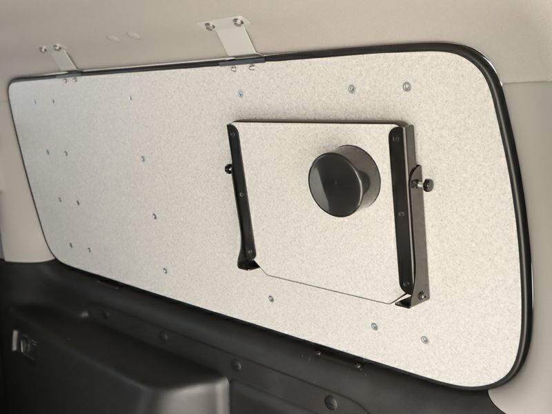 ご注文前にご確認ください ※ESウィンドウパネル(ナット有)は別売りです。200系ハイエース用、キャラバン用、NV200バネット用の、周囲にモールが巻かれた新しい仕様のESウィンドウパネル(ナット有)が必要です。周囲にモールが巻かれていない以前の仕様のESウィンドウパネル(ナット有)に装着する場合、土台プレートの穴位置と、ウィンドウパネルのナット穴位置がずれる可能性があり、土台プレートの穴を大きくするなどの加工が必要となります。