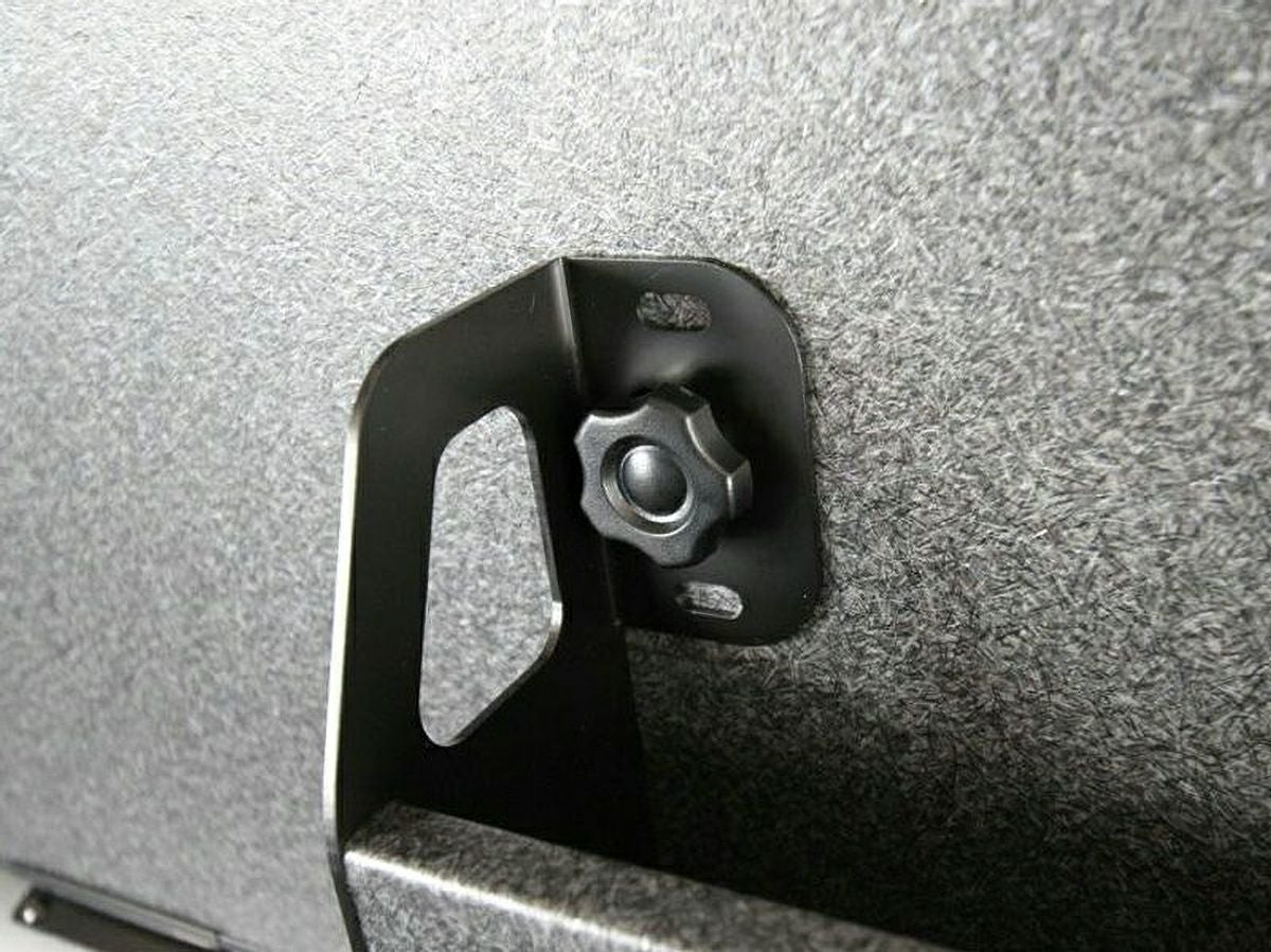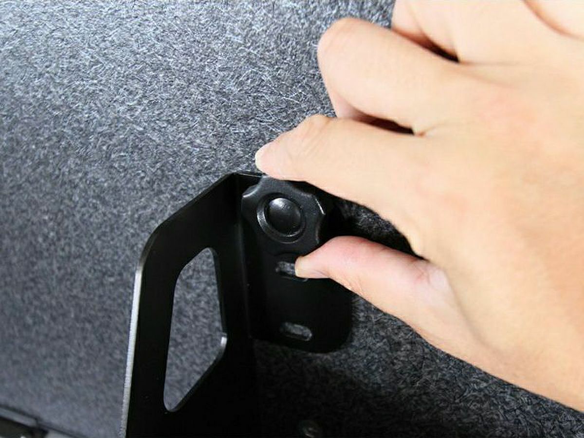 付属のノブボルトで左右固定するだけです。さらに、取付けるステーの穴位置を変えることで取付け位置の微調整も可能です。