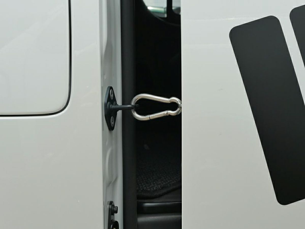 お店に行きたいけど、ワンちゃんと一緒には入れない。車にワンちゃんを残して離れるのも心配。。。車中泊や車内での休憩時に換気したいけど、ドアを開けておくのも不安。。。そんな時、このパーツがあればお悩みを解消します。このバーを車両のバックドアにセットし鍵を掛けてしまえば、換気をしつつドアをロックできます。