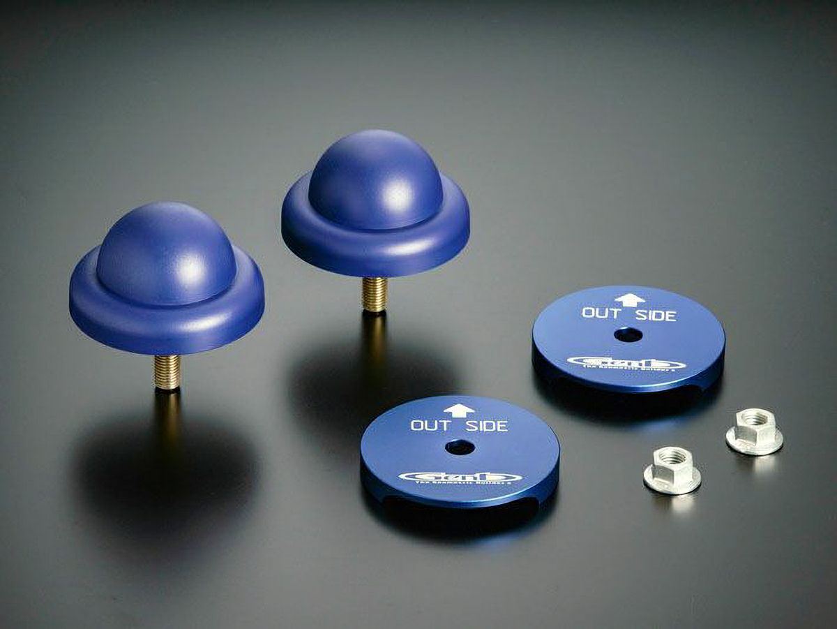 しかし、これからは「バンプストッパーPRO」によって過去の常識は覆されるでしょう。異なる硬度を持つ2種類の合成樹脂を最適な比率で構成する新技術により、これまで不可能とされていたバンプショック軽減とストローク制御の両立に成功。また、新たに開発した「マウントプレート」がアーム上面幅を超えるストッパーの大型化に貢献。容量アップしたストッパーは潰れ剛性が大幅に向上し、従来品を遥かに凌ぐ耐久性を実現しました。さらに、オプション設定された「アジャストプレート」を組み合わせて使用すれば、ストッパーの作動ポイントを自在にコントロールできます。