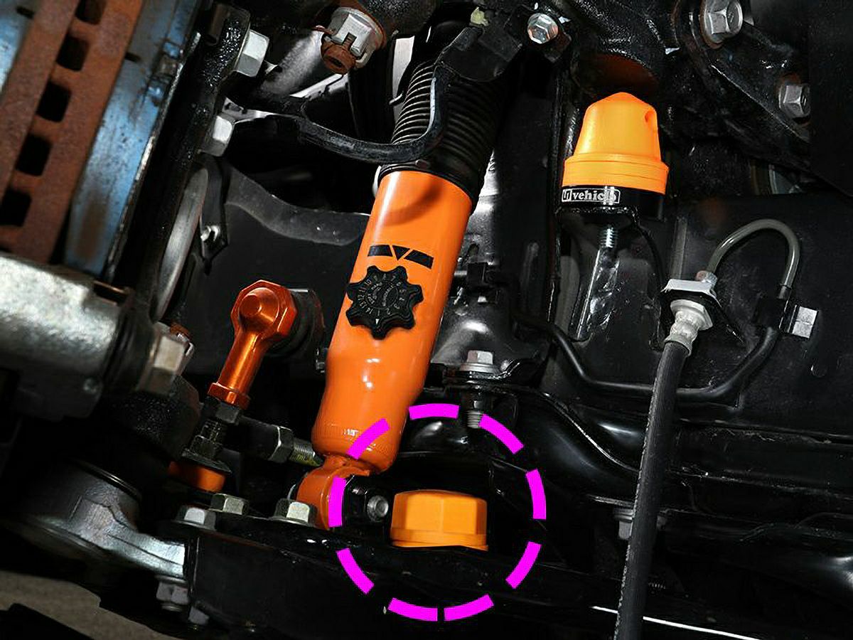 ウレタンワッシャーによる高さ調整タイプで、ソフトタイプのウレタンを使用し、フルバンプ時の衝撃を緩和します。ノーマル車高~3インチダウンまで対応しています。