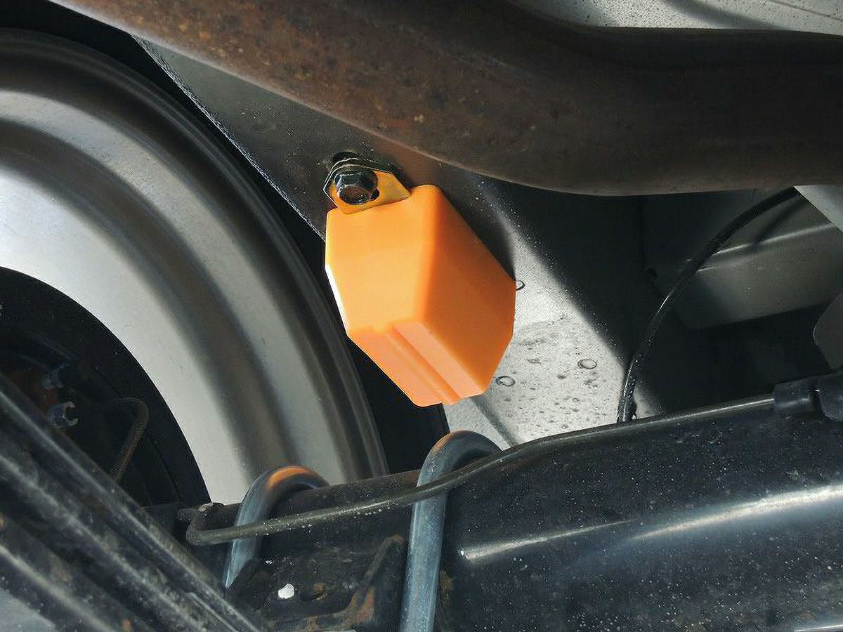 ソフトタイプのバンプストップに交換しました。クリアランスを保ちつつ、燃料ホースにヒットしないよう考慮された高さになっています。