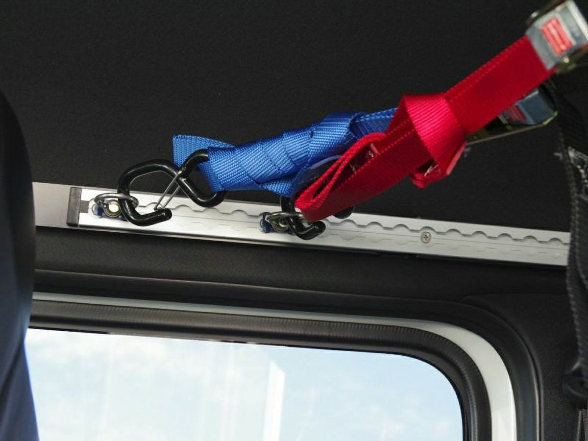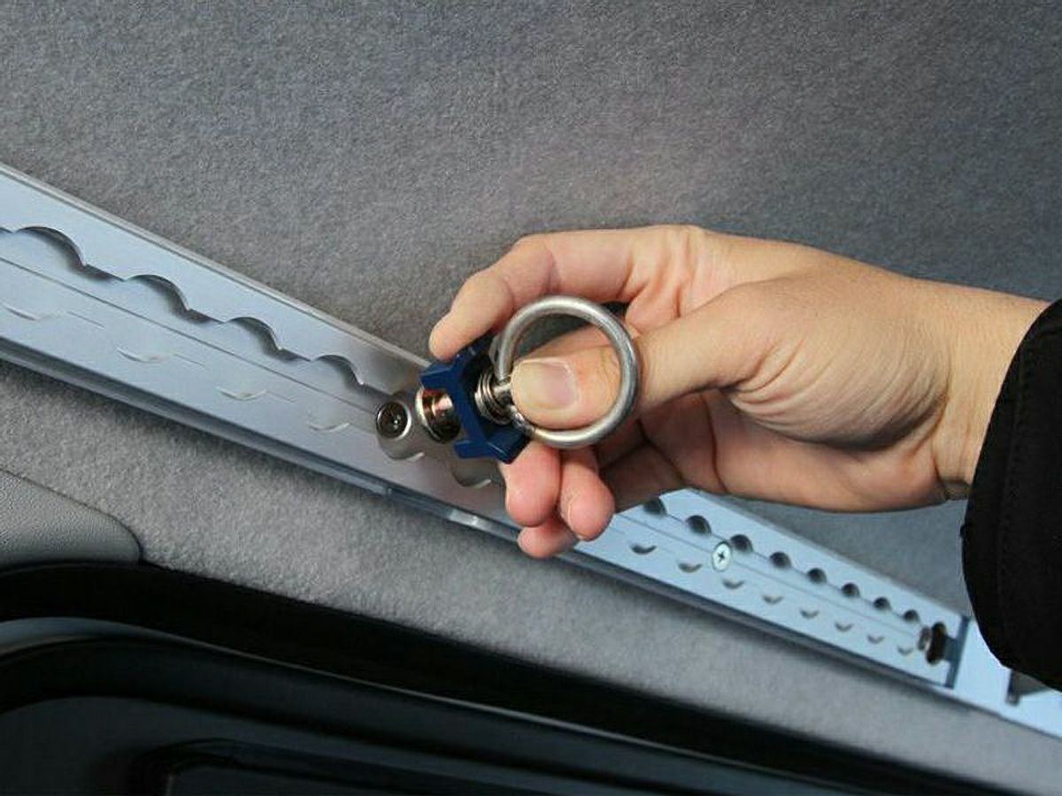 「取付強度を確保するのが難しい、200系ハイエースのスライドドア上部にフックを付けたい」、「バイクや自転車などの積載に最適な位置にフックが欲しい」。そのようなご要望にお応えすべく、専用ステーから開発したアイテムです。フック位置を変えられるワンタッチレールが装着でき、専用のフックも2個付属します。