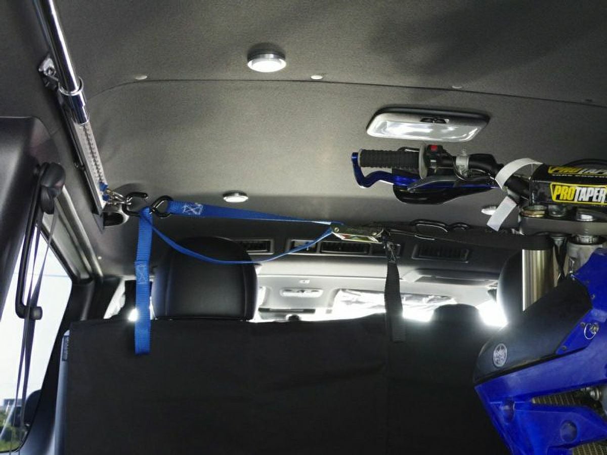 オプションで後部座席用シートベルトを付けているので、フックの位置に困っていました。  今までは、アシストグリップにL型金具とフックを付けていましたが、前過ぎるのでいつも心配しながらトラ イアル車を運んでいました。やはり、しっかりしたものを付けようと思い、この商品を購入しました。  取り付けは、比較的簡単でしたが、ワンタッチレールのM6ボルトが最後まで入らず、タップを切って事なきを得ました。また、ワンタッチレールのボルト穴が若干ずれていたのが、残念です。  ワンタッチリングは自由に付け替えができ良く、フックの使い勝手は、とても良いと思います。  ただ、後方の取り付け位置でワンタッチリングを使用した場合、強度が心配ですが、全体的には良い買い物だったと思います。