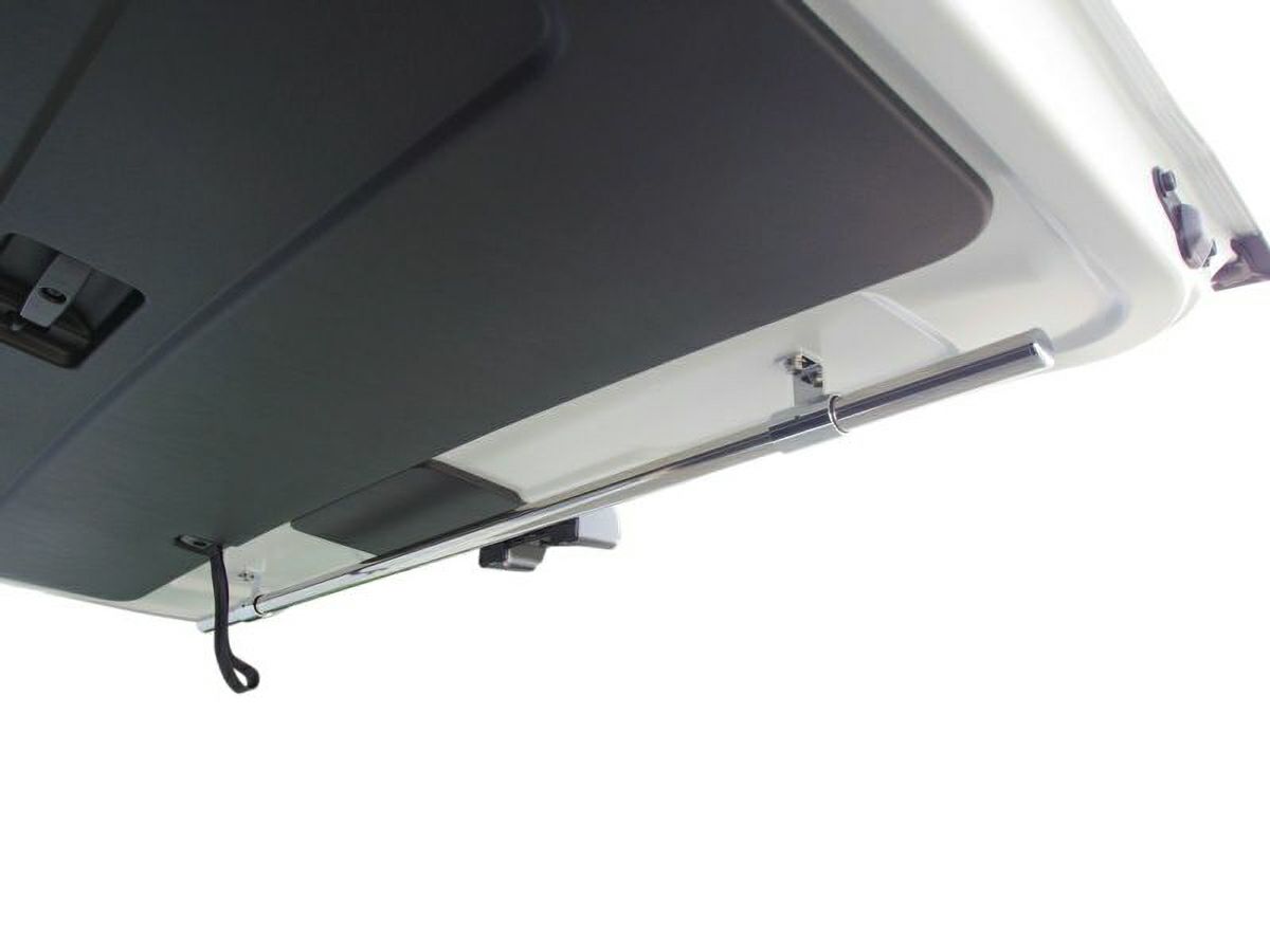 NV350に装着。サーキットでツナギを干したり、タオル掛けたりする為に購入しました。ボディ部分への穴あけ加工が必要な商品なので、電動工具を持っていて作業に慣れた人なら30分くらいの作業で取り付けができます。作業マニュアルには、10Φ(10mm)のドリルで穴あけと記載されていますが、6.5Φ(6.5mm)で十分です。