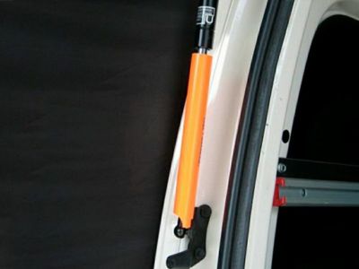 しっかりとした材質でダンパーにフィットします。使用しないときは、キャンピングカー(ホビクルオーバーランダー)のアイアンシーリングバーに挟んでおけます。 リアゲートにさらに重たいものを載せる場合は専用ポールを使用するので、ちょっとしたストッパーとしてとても便利です。